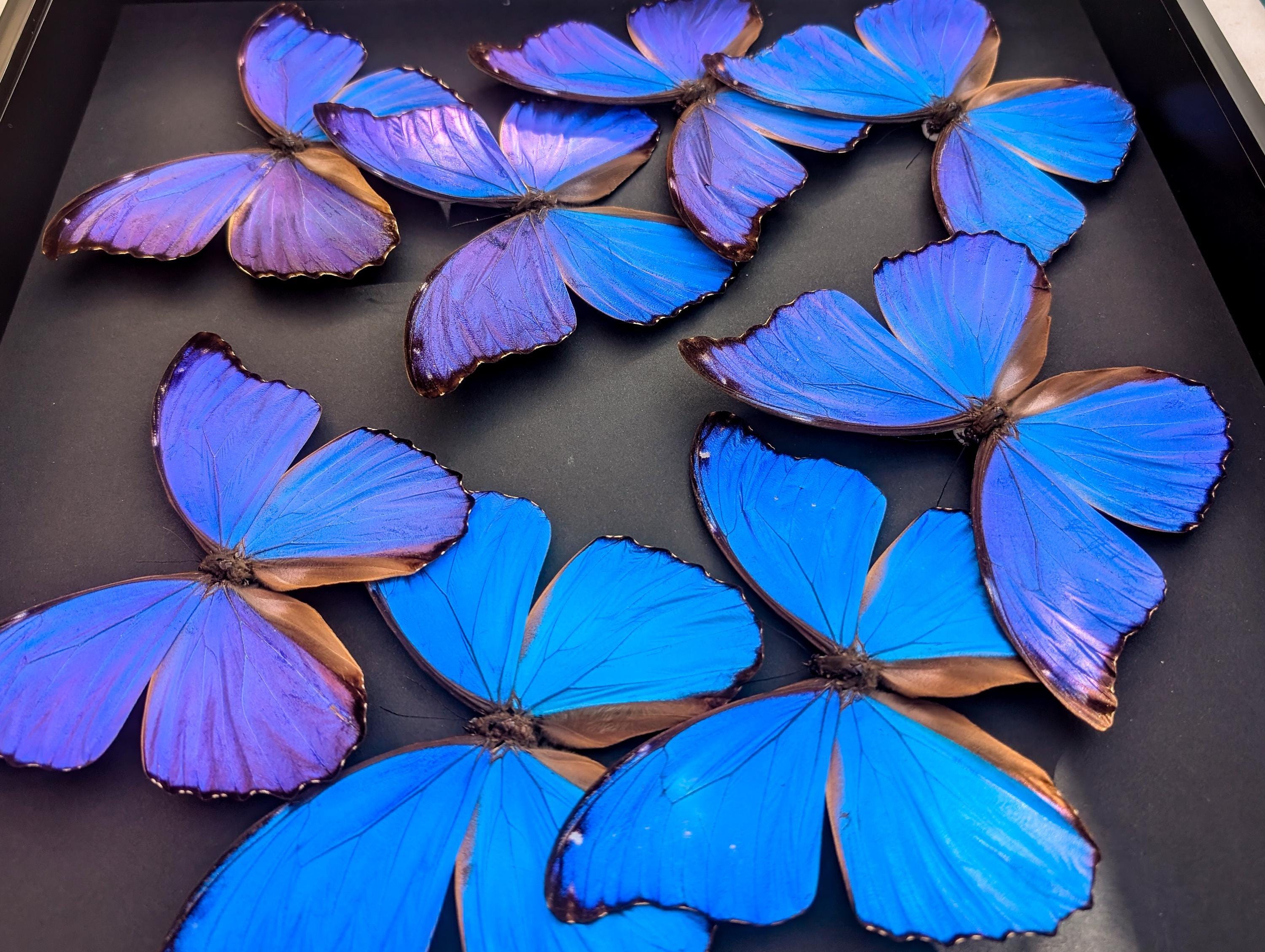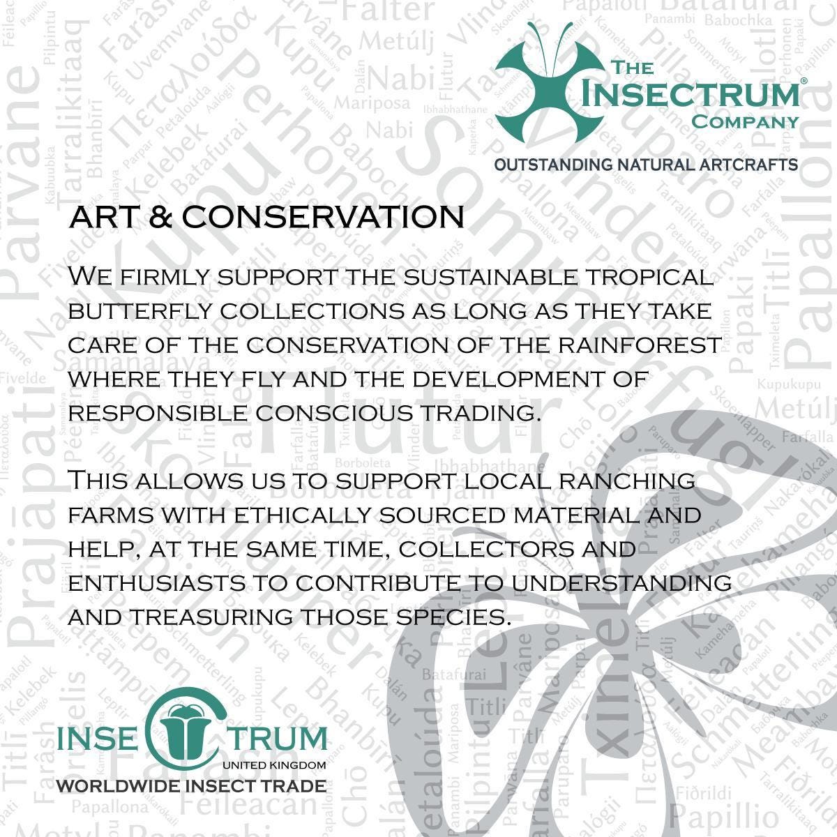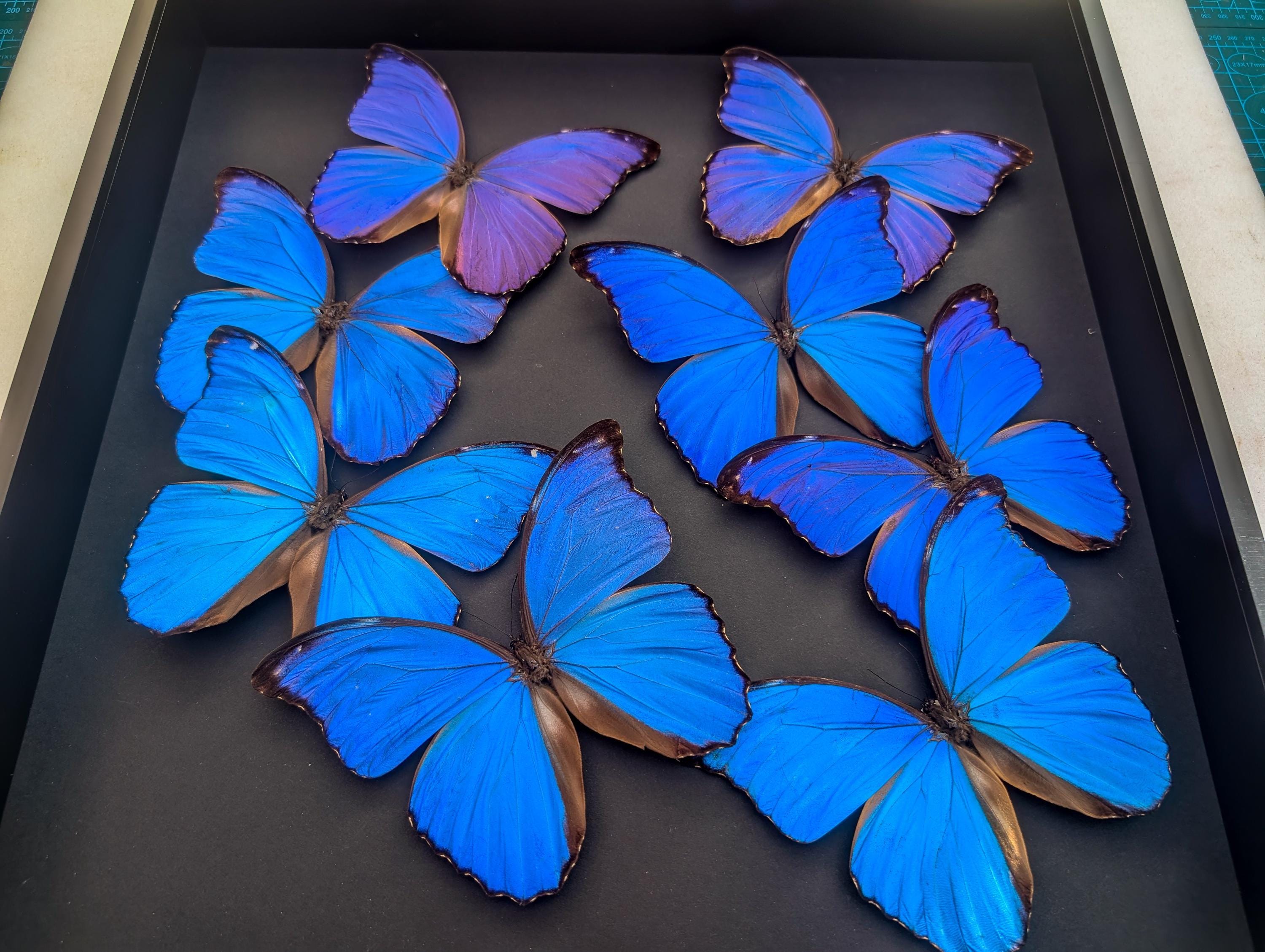 Last stock! Product form Framed Iridescent Blue Morpho Butterfly Mosaic, Ethically Sourced, 16" x 16" £304.43Incl. VAT Morpho didius composition, the giant blue Morpho, mosaic made with 9 real iridescent blue real butterflies frame 16" X 16"Morpho... BLACK FRAME WHITE FRAME Frame colour BLACK FRAME WHITE FRAME SKU: INSECTRUMFRAMES2967 4 products in stock Show extra info for delivery time Add to cart This item is a recurring or deferred purchase. By continuing, I agree to the cancellation policy and authorize you to charge my payment method at the prices, frequency and dates listed on this page until my order is fulfilled or I cancel, if permitted. Shipped today? Order within: Mar 05, 2026 17:00:00 +0000 Tell a unique detail about this productTell a unique detail about this productTell a unique detail about this product Reviews 0 reviews Share with your friends Share WhatsApp Deel X Pin it Messenger Email Need help with your size? Size finder
